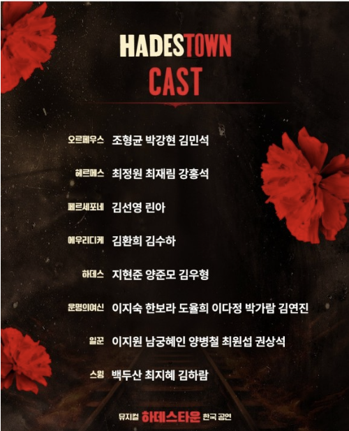 하데스타운 캐스팅은 2021년도에 했던 초연때와 동일합니다. 아마 2021년도 공연을 보신 분들이라면 그 때 캐스팅이 그대로 이어지길 기다리고 계셨을텐데요, 그 바람이 이루어졌습니다.