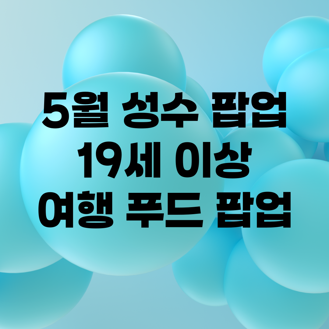 벌써 5월 중순입니다. 따뜻한 봄날씨에 가벼운 옷차림으로 야외로 떠나도 좋고 실내에 활동하기에도 좋은 계절이네요. 또한 기업들은 본격적인 여름 준비로 신제품을 선보이는 시기이기도 합니다. 팝업의 성지 성수동에서는 벌써부터 많은 기업들의 팝업이 열리고 있는데요, 오늘은 다양한 분야의 5월 성수 팝업 스토어 일정을 알아보려고 합니다. 5월 성수 팝업 중에서도 푸드와 여행과 관련한 팝업을 소개해보겠습니다. 다들 5월 성수 팝업에 방문하셔서 연인과, 친구와 즐거운 시간 보내시길 바랍니다.