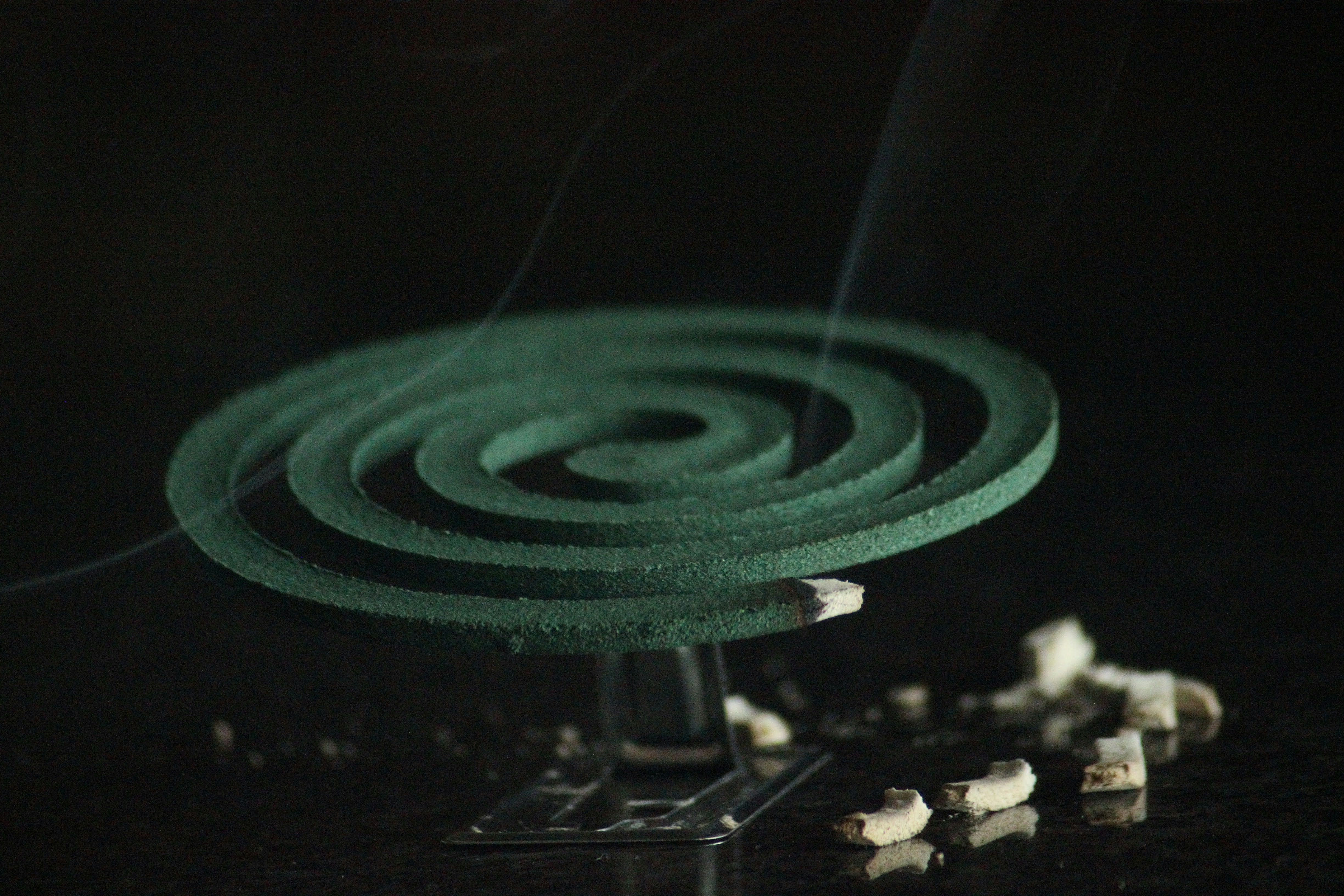 모기향의 연기를 통해 모기를 쫓아냅니다.