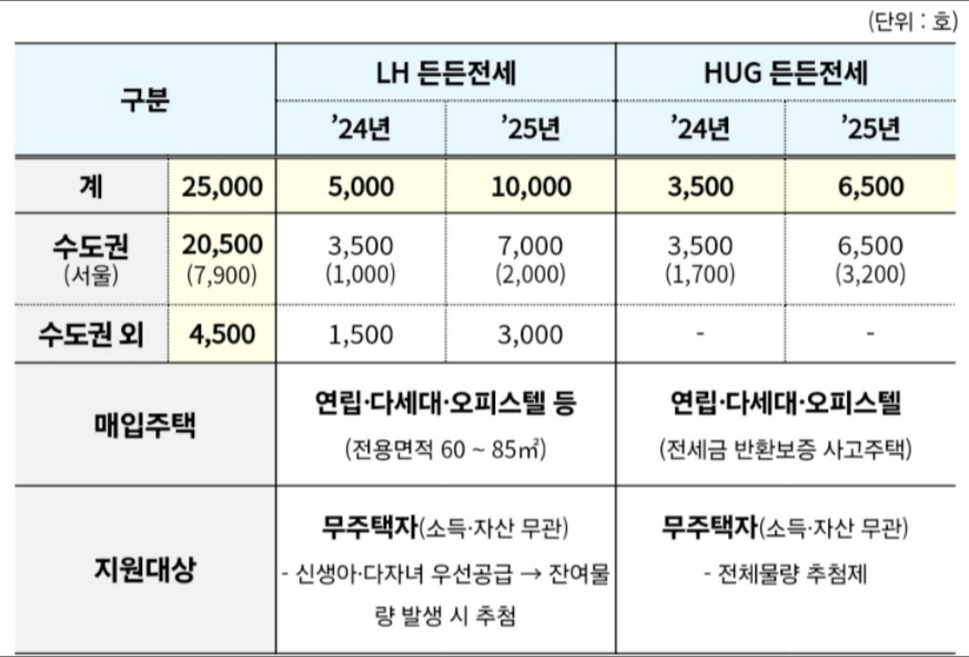 국토부는 올해부터 2년 간 든든전세주택 2.5만 호를 공급할 계획입니다. 이번 정책의 시행으로 빌라나 주택 기피현상이 나아지고 더불어 무주택자들의 따뜻한 보금자리가 생기길 기대해봅니다.