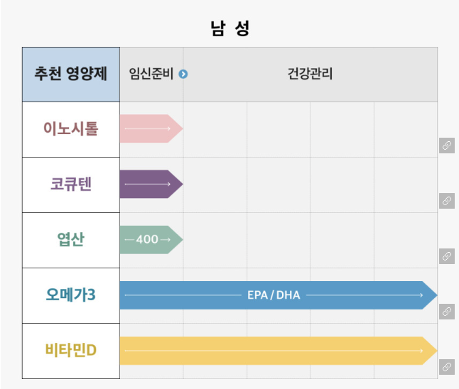 남녀 모두 이노시톨, 코큐텐, 엽산이 필요한데 우리는 엽산만 먹었다.