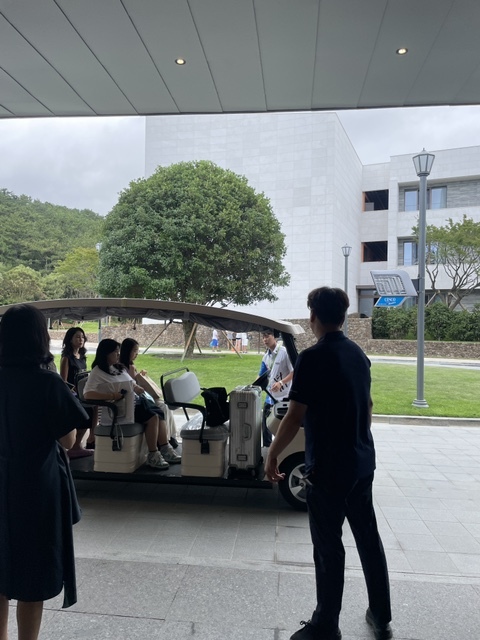 다시 올라가서 카트를 타고 객실로 이동해야 함