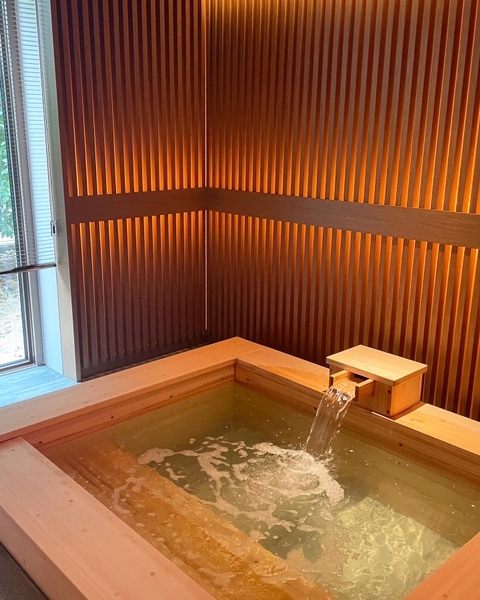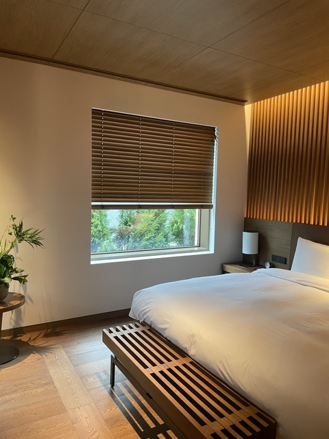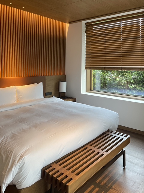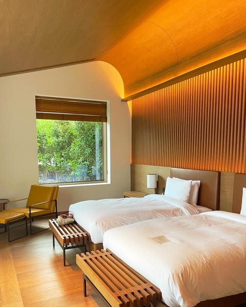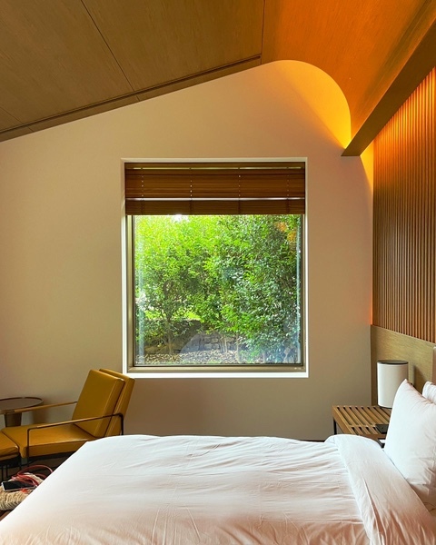큰방: 침대2, 화장실, 샤워실, 히노끼탕, 통창 가든뷰