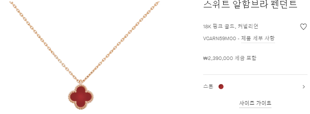 스위트 알함브라는 빈티지나 퓨어 알함브라처럼 팬던트와 체인이 고정되어 있지 않기 때문에 일상 생활에서 팬던트가 이리저리 움직인다는 특징이 있고, 목걸이 구매 후기를 보면 사이즈가 작아서 결국 빈티지 사이즈로 재구매한다는 사람들이 많습니다. 결국 반클리프 아펠 알함브라를 구매하는 사람들은 빈티지로 귀결된다는 것을 알 수 있습니다.