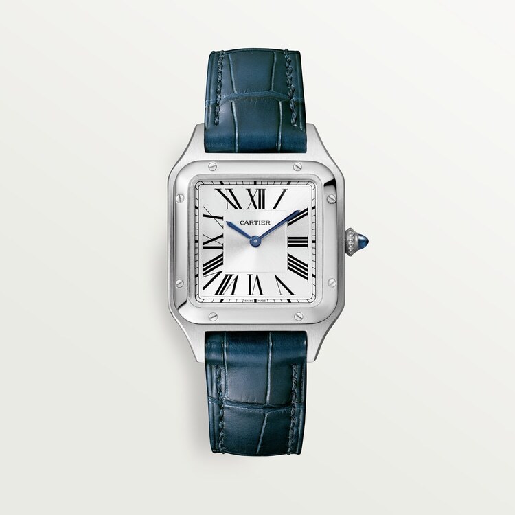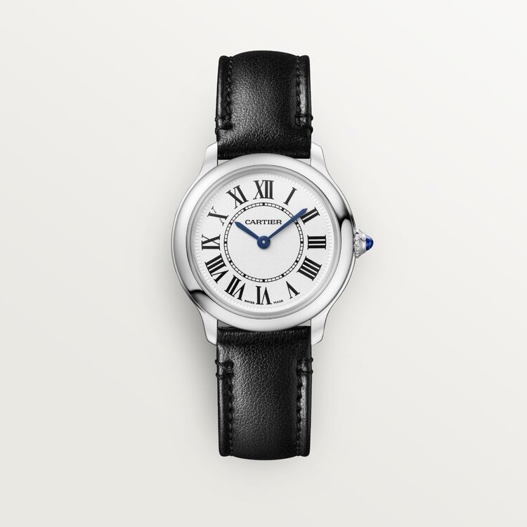 루이 까르띠에의 시대에서 유래한 롱드 드 까르띠에는 로마 숫자, 블루 컬러의 검 모양 핸즈, 사파이어 카보숑이 특징입니다. 레일 트랙 디자인의 다이얼이 돋보이는 와인딩 메커니즘은 시대를 초월한 진정한 품격을 드러냅니다.