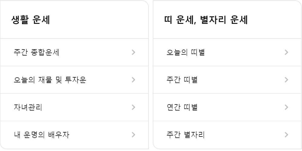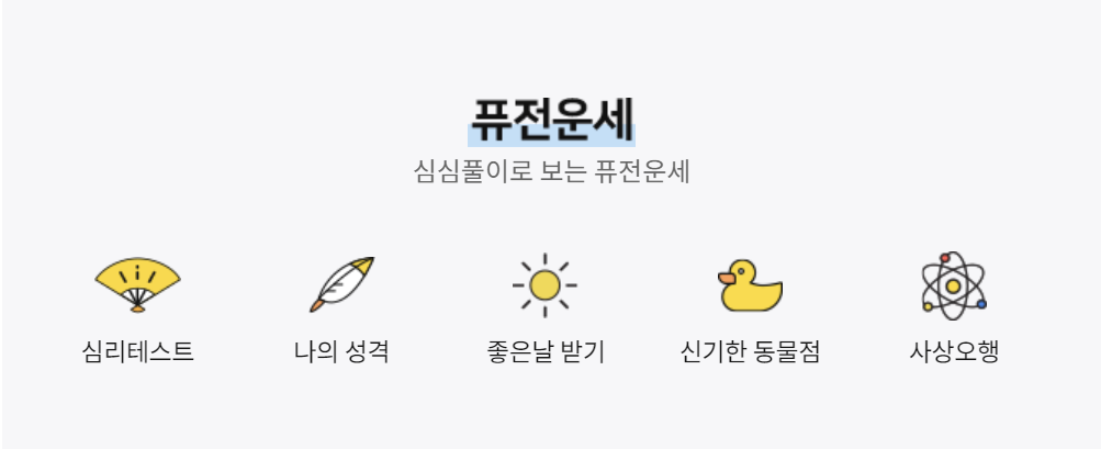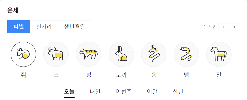 다음에서도 운세 서비스를 무료로 제공합니다. 생년월일을 통해 보는 운세와 띠별운세, 별자리운세 등 다양하게 제공할 뿐만 아니라 오늘, 내일, 이번주, 이달, 신년 등 기간에 따라서도 제공하고 있으니 구체적인 운세가 궁금하다면 다음운세를 이용해보는 것도 좋을 것 같습니다.