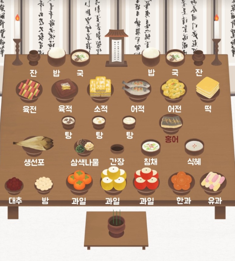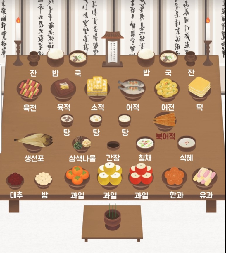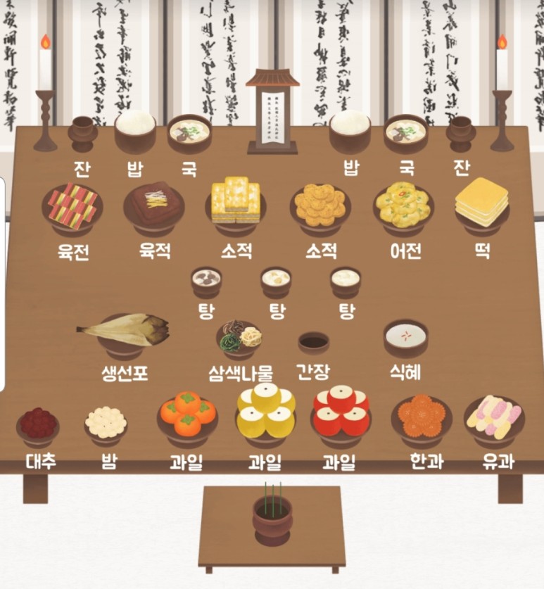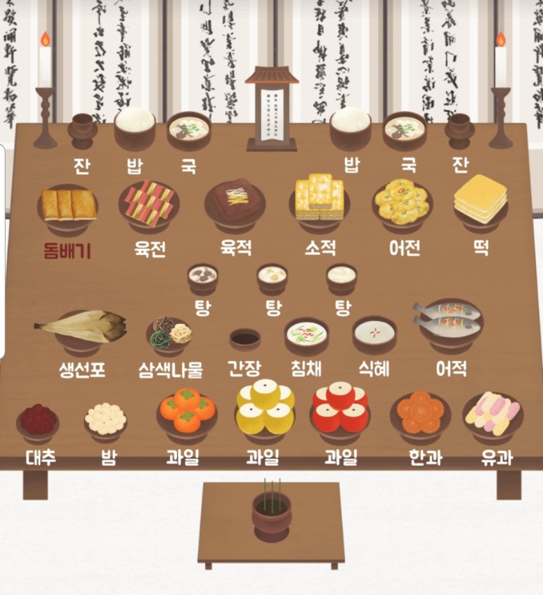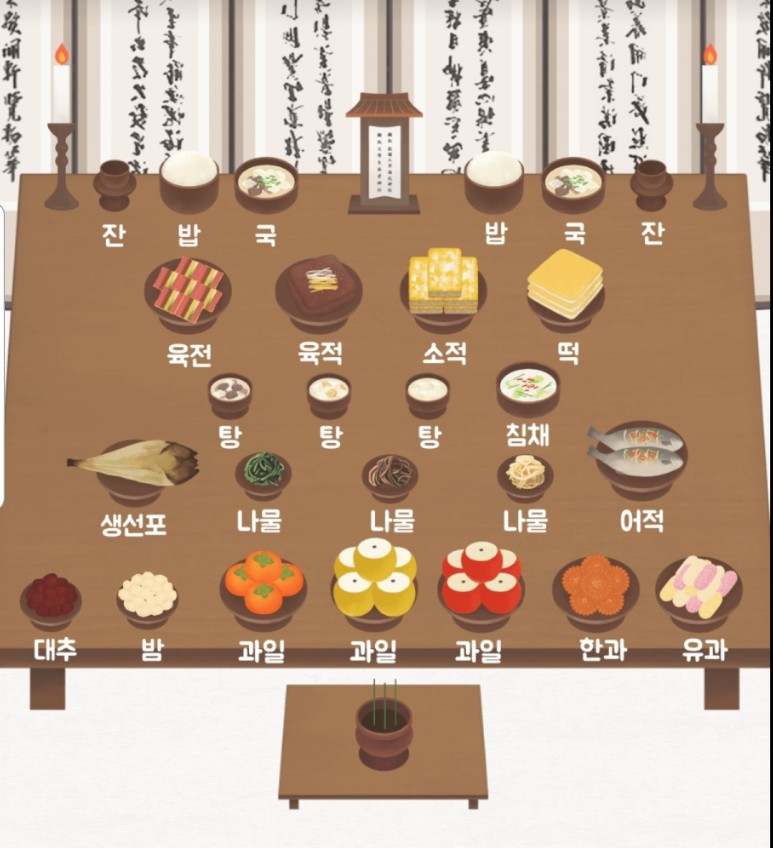 요즘은 조사닏믈이 좋아하는 음식들로 마련하는 경우도 많으니 전체적인 틀을 참고만 하시면 될 것 같습니다