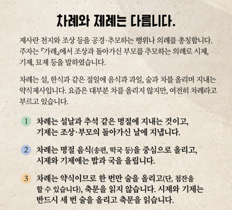 어떤 음식을 준비해야하는지, 차례를 지내는 순서는 어떻게 되는지, 음식을 차례상에 올리는 방법과 지방쓰는 법 등 차례를 지낼 때 알아야할 전반적인 것들을 알려드리겠습니다.